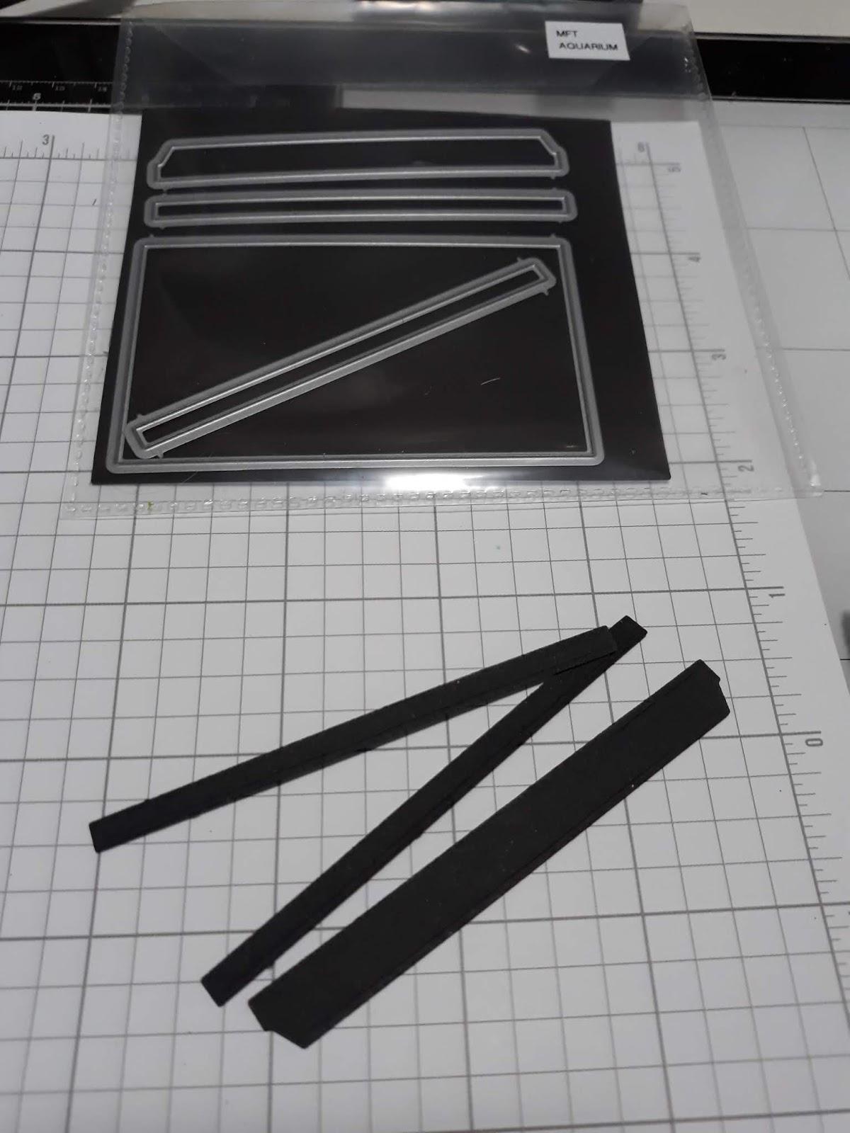 Out of black cardstock, I cut the top and bottom strips for the aquarium.